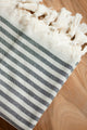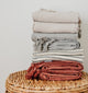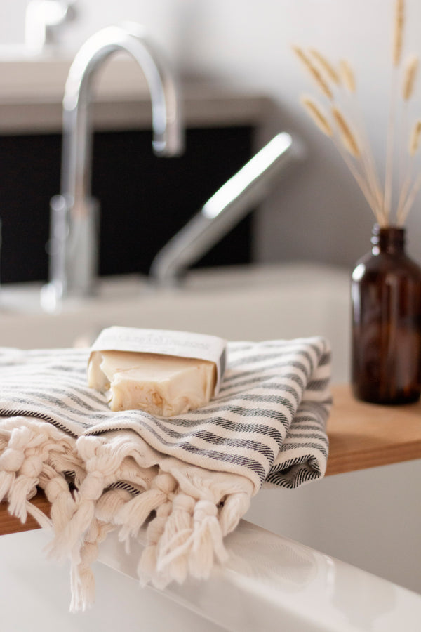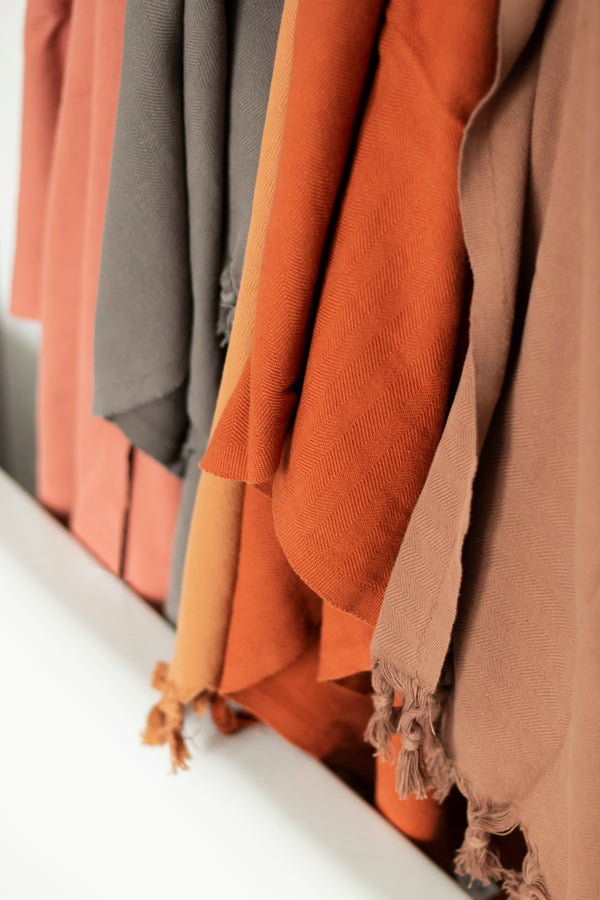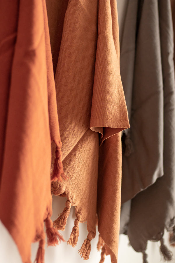 Beautifully hand-loomed by talented Turkish artisans, the Oversized Turkish Towel is our most versatile piece. Aside from wrapping yourself in luxurious softness after a bath, this towel can accompany you at the beach or pool as a sarong, at home as a blanket, or day to day as a scarf to compliment your outfit. The unique weave dries quickly and is naturally antibacterial so it will never have that damp towel smell. You will enjoy feeling cozy and dry faster, along with the ability to change the towel’s function as you go about your day. These towels are incredibly absorbent yet lightweight, allowing them to be folded up quite compact and easy to pack into your purse or travel bag. It repels sand and grass so just give it a shake and you won’t be bringing the beach home with you. The more you wash this towel, the softer and more absorbent it will become.