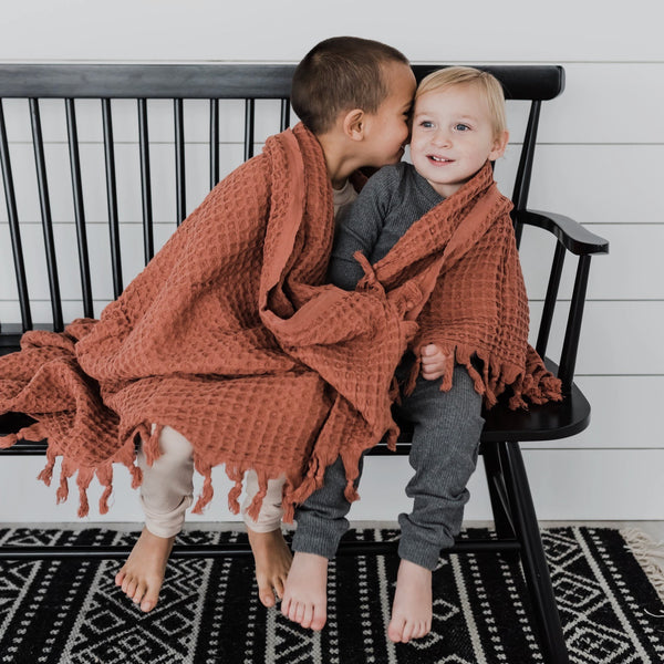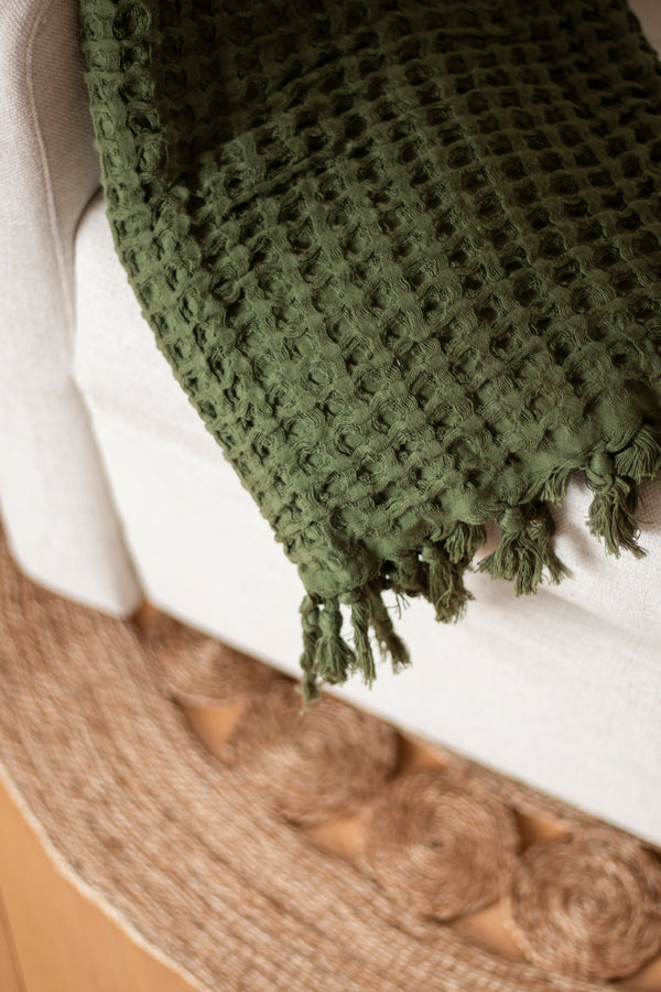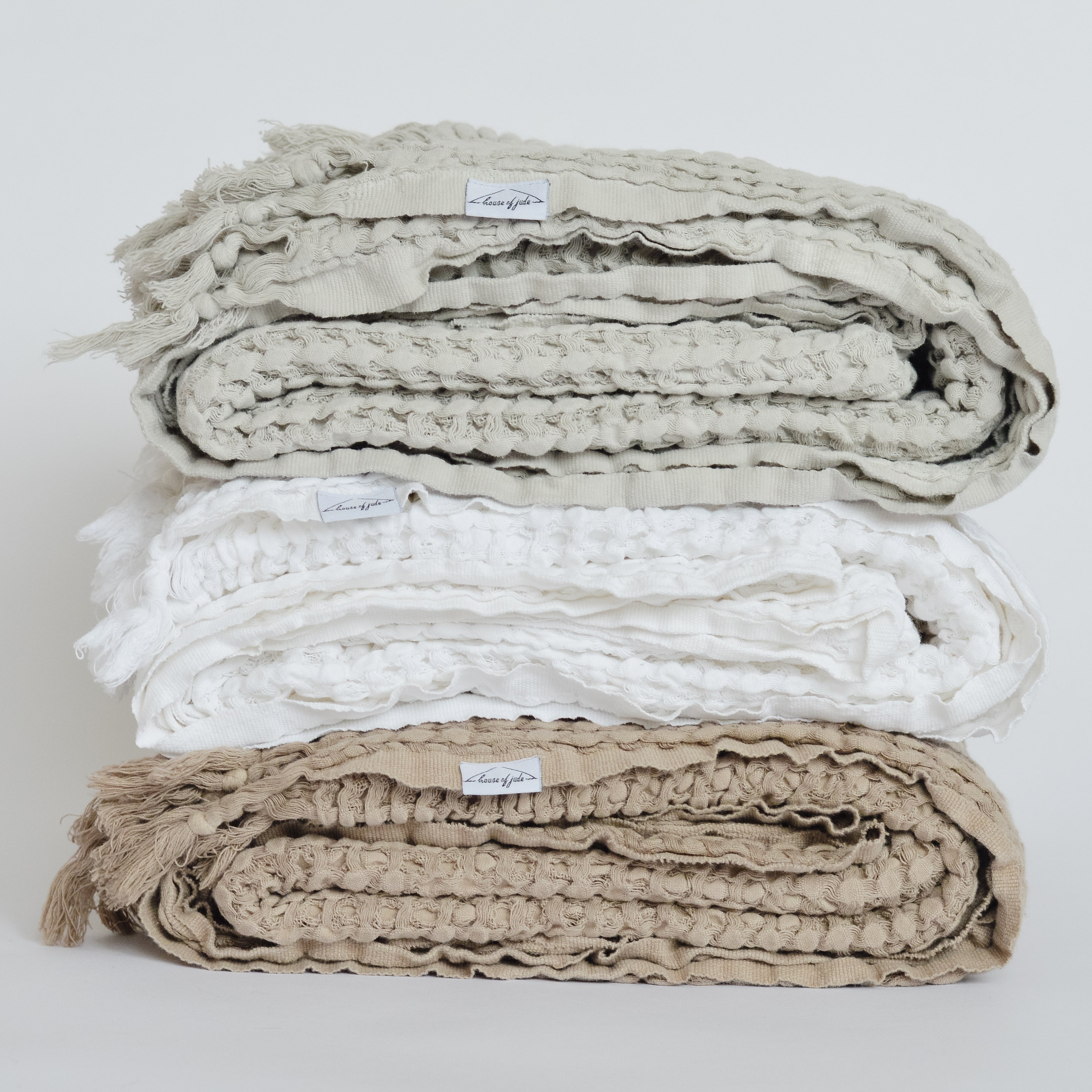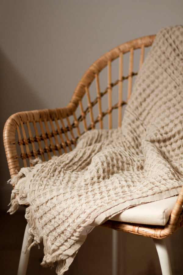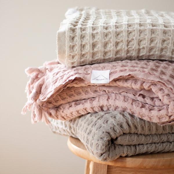 Now one of your favourites from our collection, our exquisite Waffle Blankets add luxury and style to the home. We believe in the softness and durability of Turkish cotton and designed these blankets as heirloom pieces for the most important people in your life. The intricately styled waffle weave offers a visually stunning piece that is both comfortable and timeless. An heirloom piece that will be enjoyed for a lifetime. This Piccola size makes a gorgeous throw or child's blanket and the Grande size is great for a few people to snuggle under, and even fits a king sized bed!